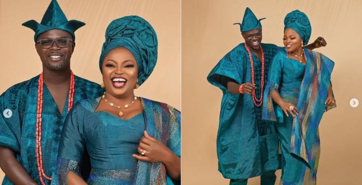 Looking beautiful, funke shared the photos this morning as she slipped into the nigerian yoruba traditional wedding attire (a.k.a aso oke) .